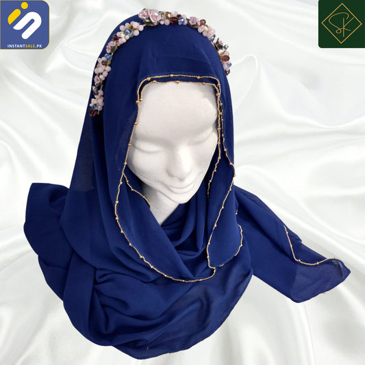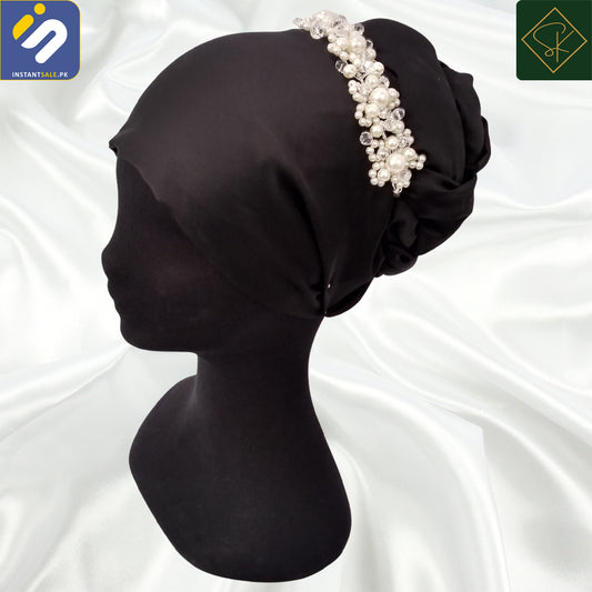 SK Imported Crystal Pearl Flower Headband for Hijab - Elegant Bridal Hair Accessories with Ribbon