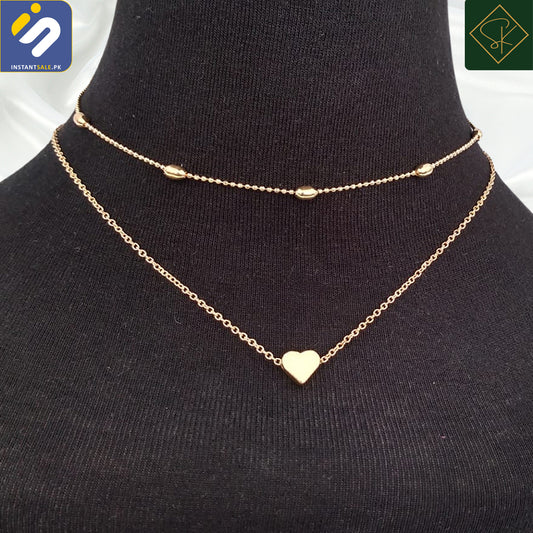 SK Imported Golden Layered Choker Necklace Delicate Bar Pendant Necklace Gold Heart Double Chain Jewellry for Women, J303