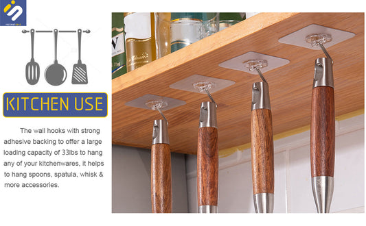 Pack of 5 Wall Hooks, Hanging Hook, Waterproof, Oil Proof, Organizer, Storage, Self Adhesive Hooks, Sticker, Tape